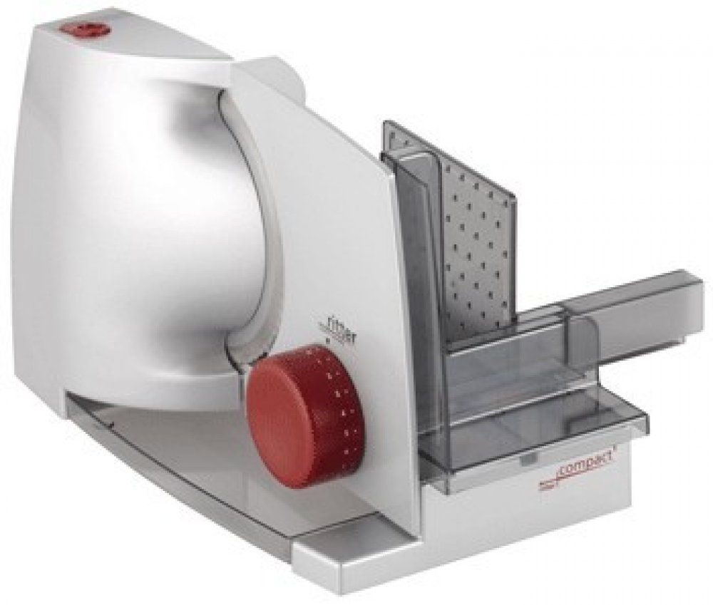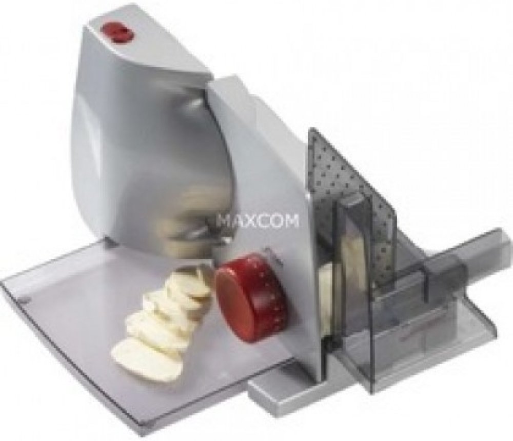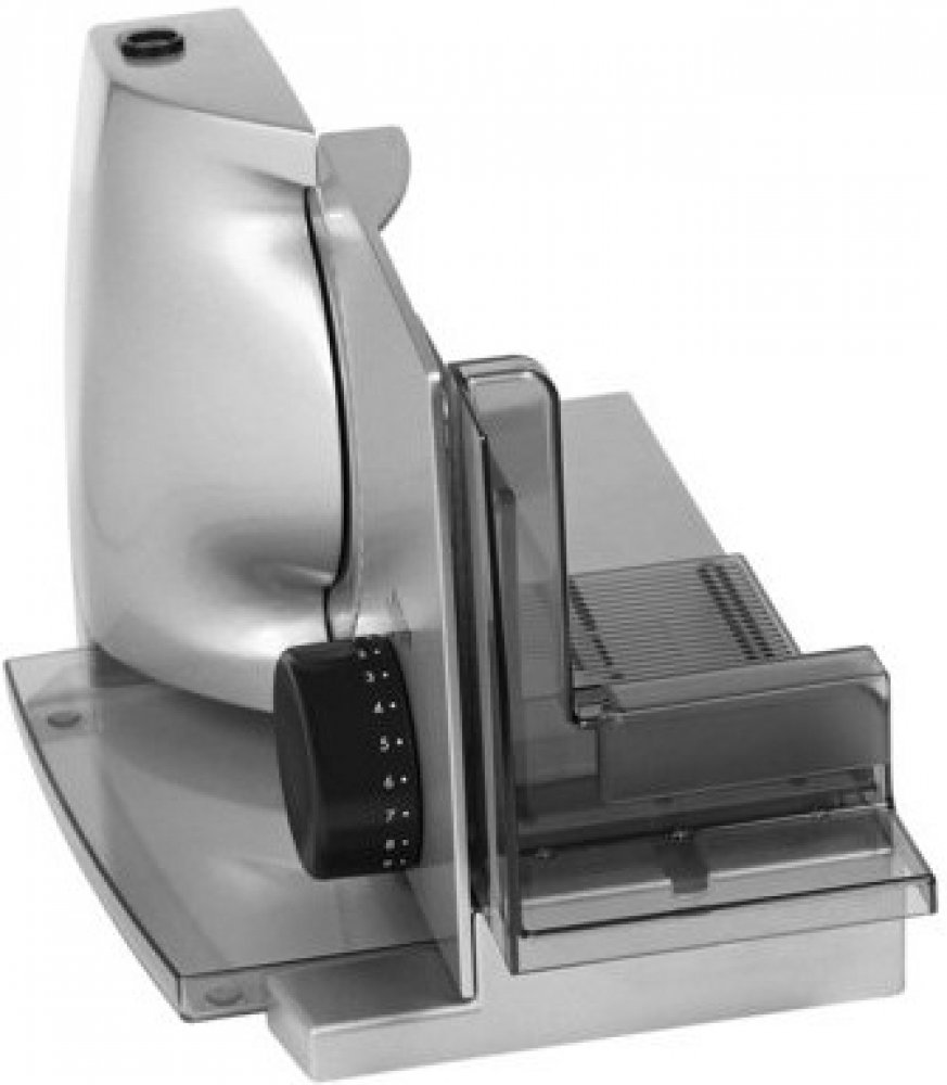 Tloušťka řezu je plynule nastavitelná až do cca 20 mm. Díky odnímatelnému posunu lze také odříznot větší kusy potravin.