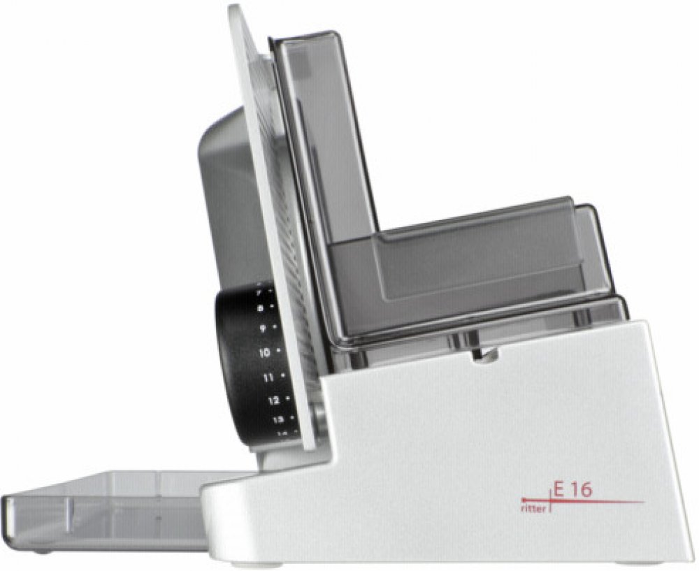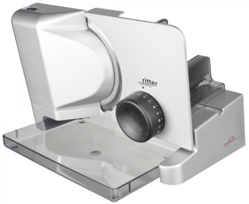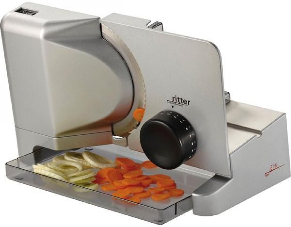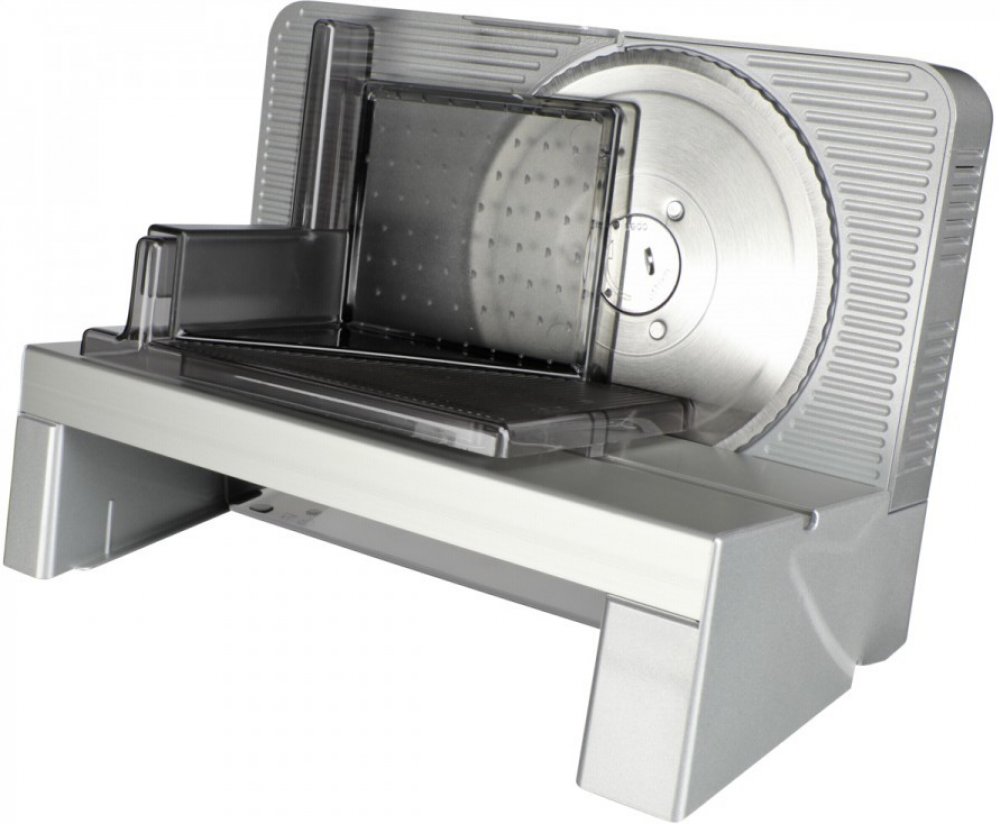 - Kráječ je vybaven vroubkovaným nožem z nerezové oceli, funkcí jednorázového, nebo nepřetržitého krájení, uložení kabelu a zásobník na nakrájené potraviny