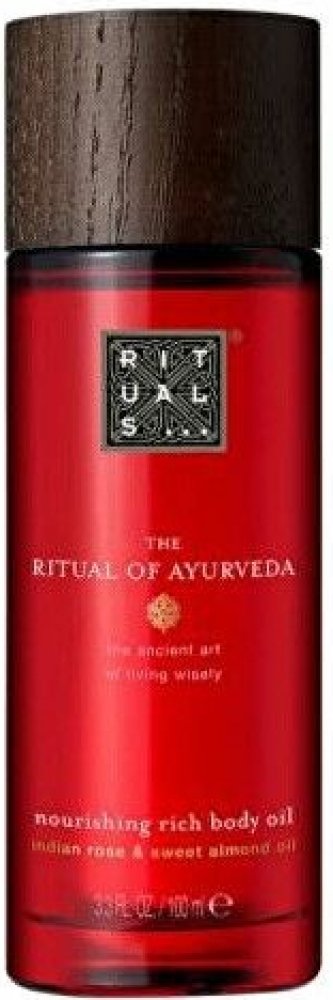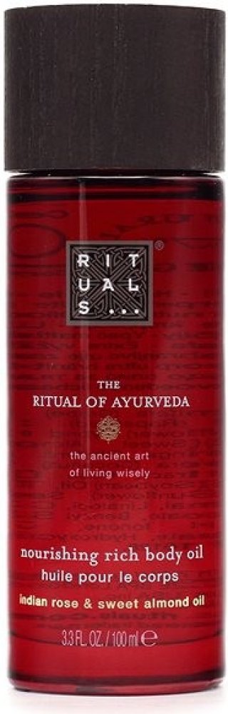 Rituals The Ritual Of Ayurveda Nourishing Rich Body Oil je bohatý tělový olej, který přináší mimořádně výživnou péči. Byl vyvinut tak, aby poskytoval hloubkovou a okamžitou hydrataci a udržoval pokožku jemnou a chráněnou.