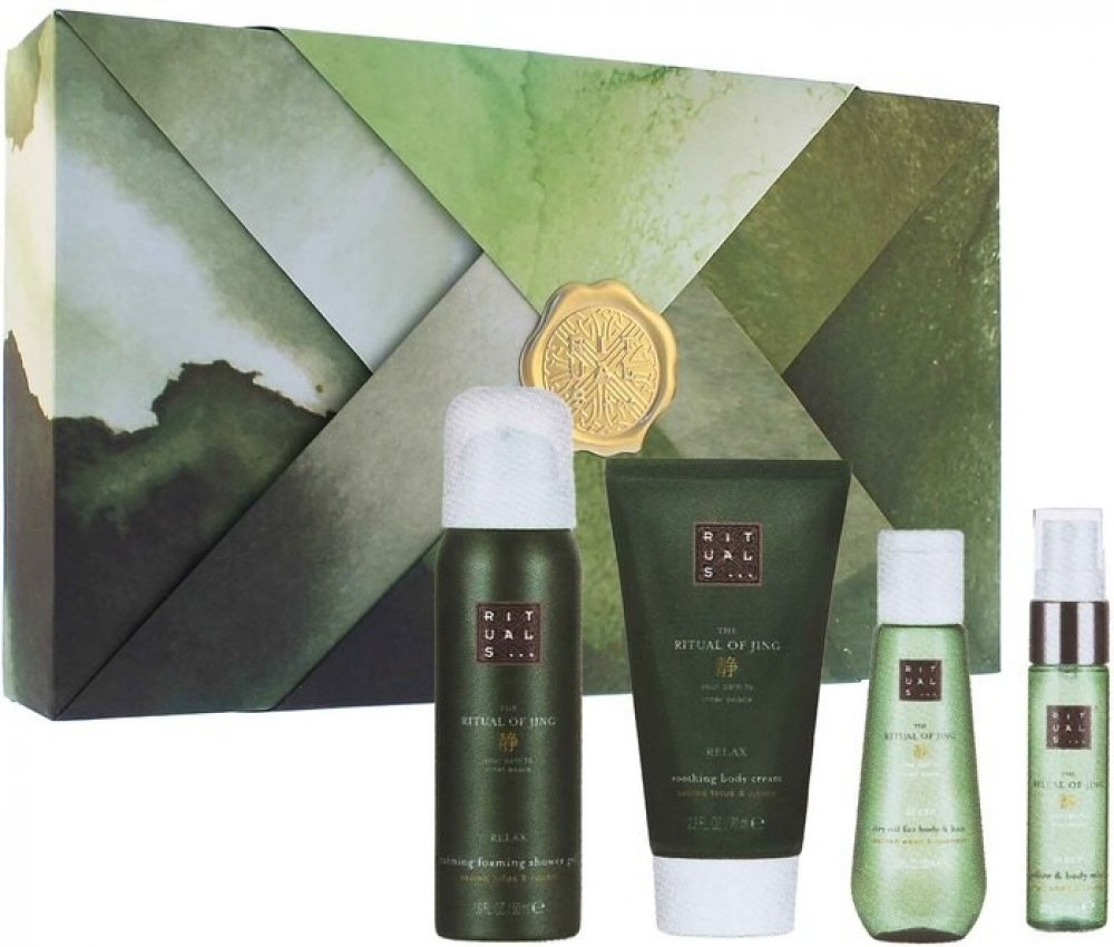 Rituals The Ritual Of Jing Small sprchová pěna 50 ml + krém na ruce 50 ml + mlha na ložní prádlo a tělo 20 ml + sprchový olej 75 ml