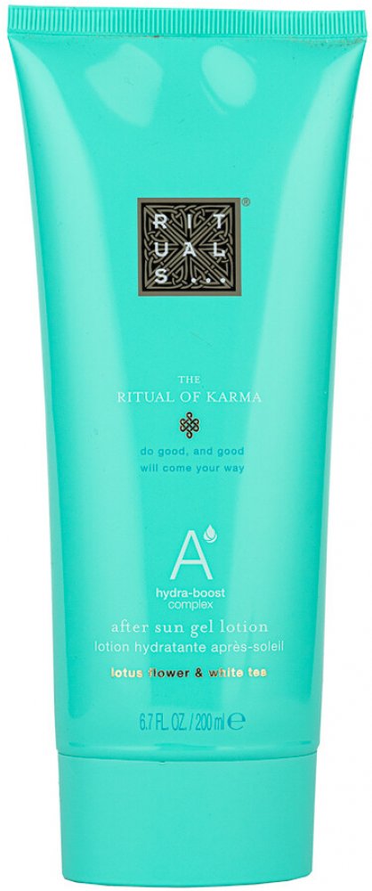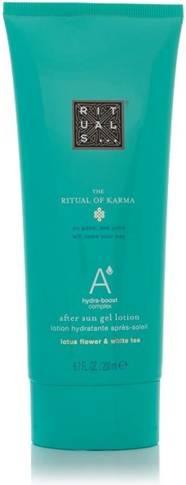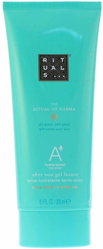 Rituals The Ritual of Karma After Sun Gel Lotion je lehký gel-krém ideální pro regeneraci pokožky po slunění. Díky aloe vera, lotosu a bílému čaji dodává intenzivní hydrataci, zmírňuje pnutí a podporuje zklidnění začervenání. Chladivý efekt pomáhá okamžitě ulevit přehřáté a citlivé pokožce, zatímco jemná textura se rychle vstřebává a nezanechává lepivý pocit. Lotion obnovuje měkkost a pružnost pok...