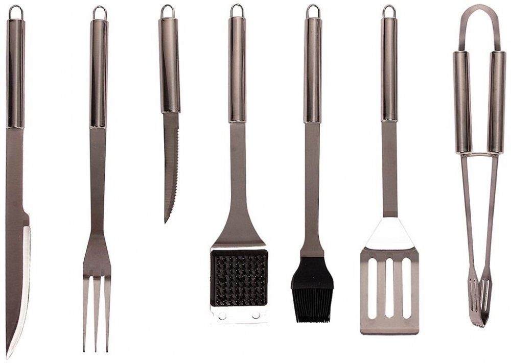7-dílná nerezová sada grilovacího nářadí v kufruširoká sada sedmi kusů grilovacího nářadí Riwall vám usnadní jakoukoliv manipulaci s grilovanými pokrmy a stane se vítaným pomocníkem při přípravě jídel na grilusada obsahuje nejenom nejpoužívanější grilovací nářadí, ale i nářadí na údržbu roštu–…
