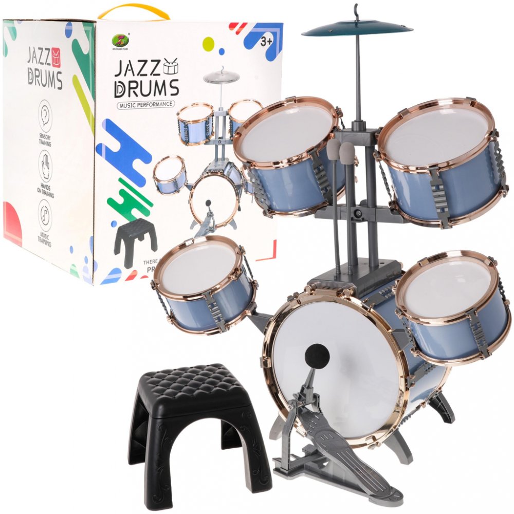 Velká modrá dětská bicí souprava je ideálním nástrojem pro malé hudební nadšence od 3 let. Tento barevný a atraktivní set obsahuje kompletní bicí nástroje se vším potřebným pro malé bubeníky:5 bubnů různých velikostíkovový činel2 bubnové paličkypohodlné sedačkyDětská bicí souprava nejenže poskytne hodiny zábavy, ale také podporuje rozvoj rytmických dovedností a motoriky dítěte. Rozměry:Bicí souprava: přibližně 64 cm x 36 cm x 76 cmVelký buben: průměr přibližně 29 cmStřední buben: průměr přibližně 20 cmMalý buben: průměr přibližně 16 cmKovový činel: průměr přibližně 20 cmPaličky: délka přibližně 25,5 cmStolička: přibližně 24 cm x 20 cm x 17 cmObsah balení:Velký buben s pedálem pro údery2x střední buben2x malý bubenKovový činel2x paličkaStolička