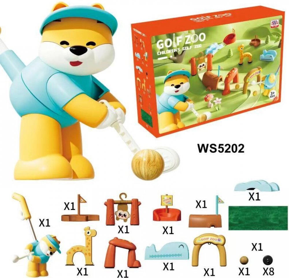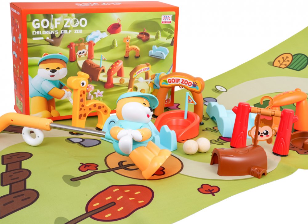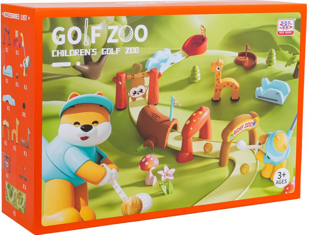 Zábavný golfový set pro děti od 3 let se zvířátky ze zoo a velkou pěnovou podložkou pro hraní doma i venku. Bezpečné kvalitní materiály, dřevěné míčky a sound efekty fanfár po trefení jamky. Ideální pro rozvoj koordinace, přesnosti a aktivní zábavu.Tento hravý golfový set zaujme děti pestrými barvami a motivy zoo. Úkolem je vést míček po dráze až do jamky. Roztomilý medvídek-golfista má hůl s posu...