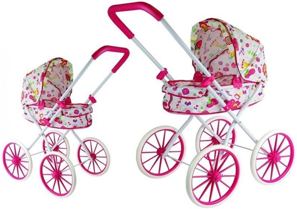 Krásný retro kočárek s motivem květin udělá radost každé malé mamince, která se s láskou stará o své panenky a plyšové hračky. Kočárek je postaven na jednoduchá a stabilní konstrukci, která zajistí bezpečný pohyb kočárku po chodníku, parku nebo na zahradě. Kola jsou velká, lehká a usnadňují ovladatelnost kočárku. Vhodné pro děti od 3 let.