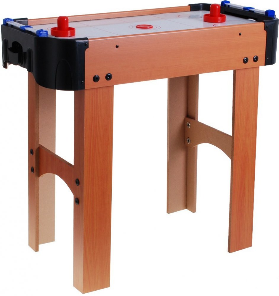 Nabízíme Vám sadu stolního hokeje, nyní si můžete air hokej zahrát i u Vás doma! Hra funguje na principu vzduchového polštáře. Otvory po bocích stolu vytvářejí na povrchu herní plochy vzduchový polštář, po kterém se pohybuje kolečko – puk. Vaším úkolem je za pomocí kotouče, který držíte v jedné ruce, trefit se do branky protihráče a tím získat bod. Kdo získá více bodů, vyhrává! Vhodná věková kategorie od 3+ let. Výrobek má evropský certifikát bezpečnosti CE.
