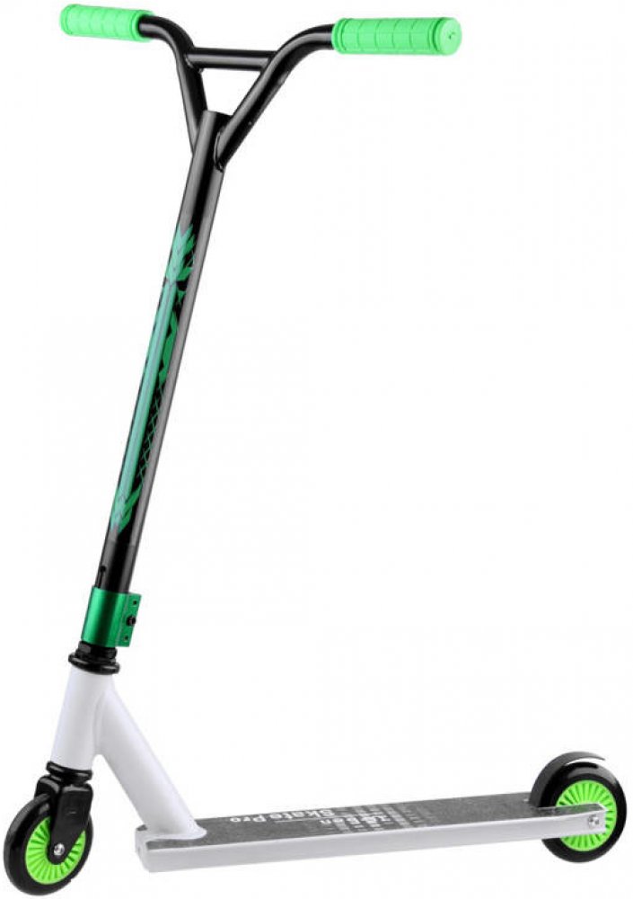 Dvoukolová výkonná koloběžka Skate Pro představuje vybavení pro ty, kteří chtějí začít s freestylovou jízdou. Koloběžka si poradí se speciálními rampami a profilovanými kopci. Skvěle poslouží k učení triků a kaskadérské jízdě ve skateparku. Řídítka ve tvaru T se otáčejí o 360°, což umožňuje provádět různé kaskadérské kousky a triky. Díky gumovým rukojetím jsou řídítka také pohodlná a bezpečná. Gum...