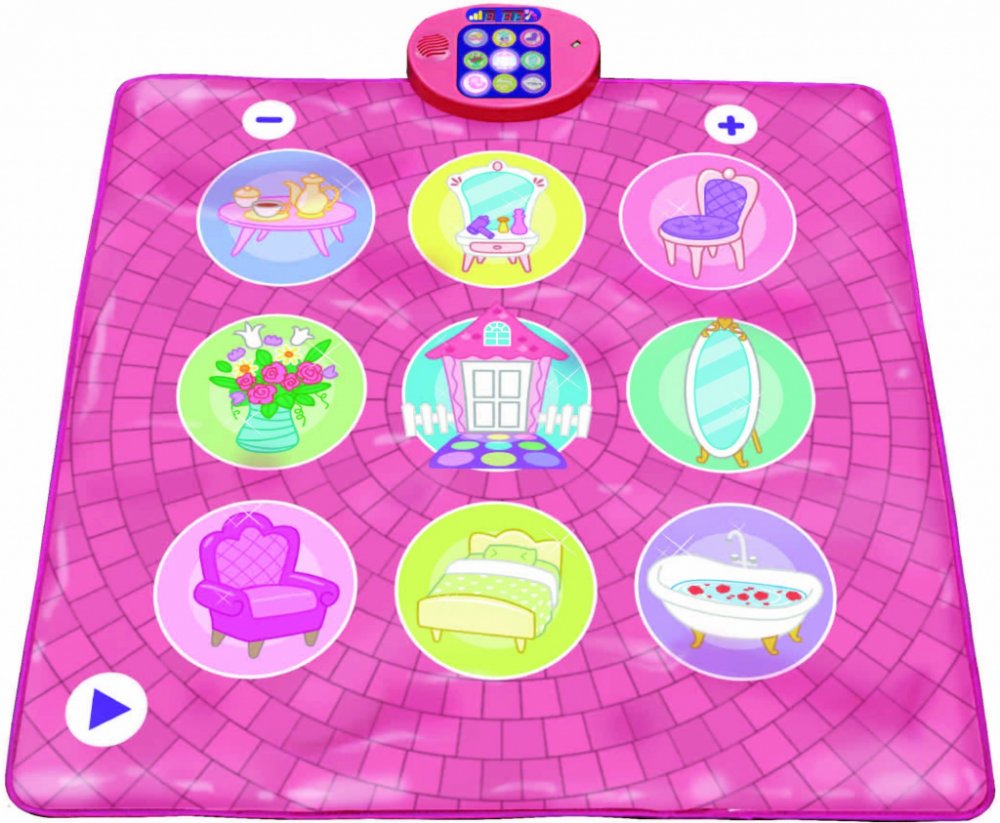 Taneční podložka má protiskluzový design a snadno se čistí. Stačí jej jemně otřít vlhkým hadříkem. Podložka má 9 obrázků s kresbami domácích předmětů, plus a mínus dotyková tlačítka (ovládání hlasitosti) a dotykové tlačítko se šipkou určené ke změně úrovně obtížnosti a režimů. Podložka má 5 úrovní, přičemž obtížnost každé úrovně se zvyšuje. Můžeme si vybrat ze 3 zábavných režimů: taneční párty, klavírní režim a demo režim s devíti vestavěnými skladbami. V horní části podložky je panel s podsvícenými obrázky domácích potřeb, LED výsledková tabule, reproduktor a vypínač. Panel je napájen 3 x AA 1,5V bateriemi (nejsou součástí balení).