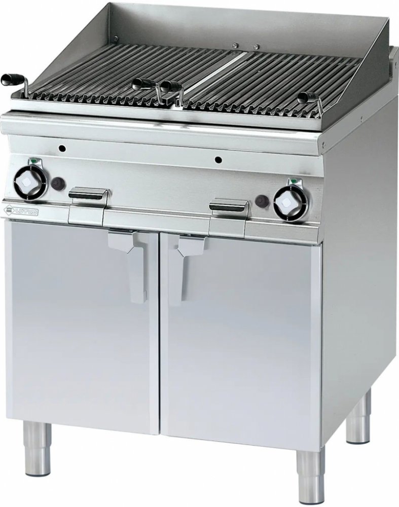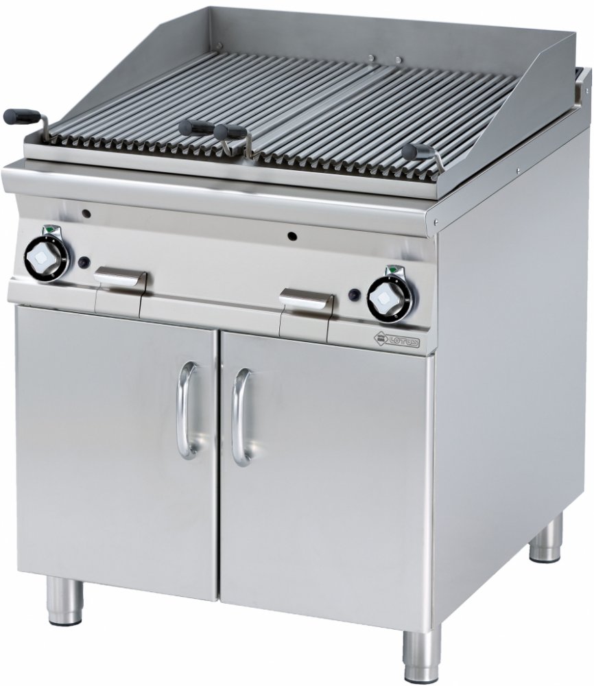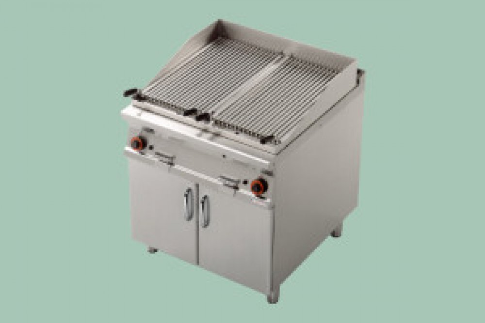 Gril lávový plynový dvojitý CW-98G, RM Gastro se zásuvkou na odpadní tekutiny, piezzo zapalováním a věčným plamínkem. Vhodný do kuchyní s produkcí nad 500 jídel (nemocnice, školy, věznice, ústavy a další velké provozy). Možnost instalace všech modelů RM Gastro i do L nebo U profilů.