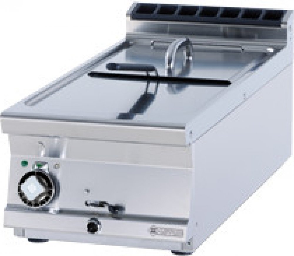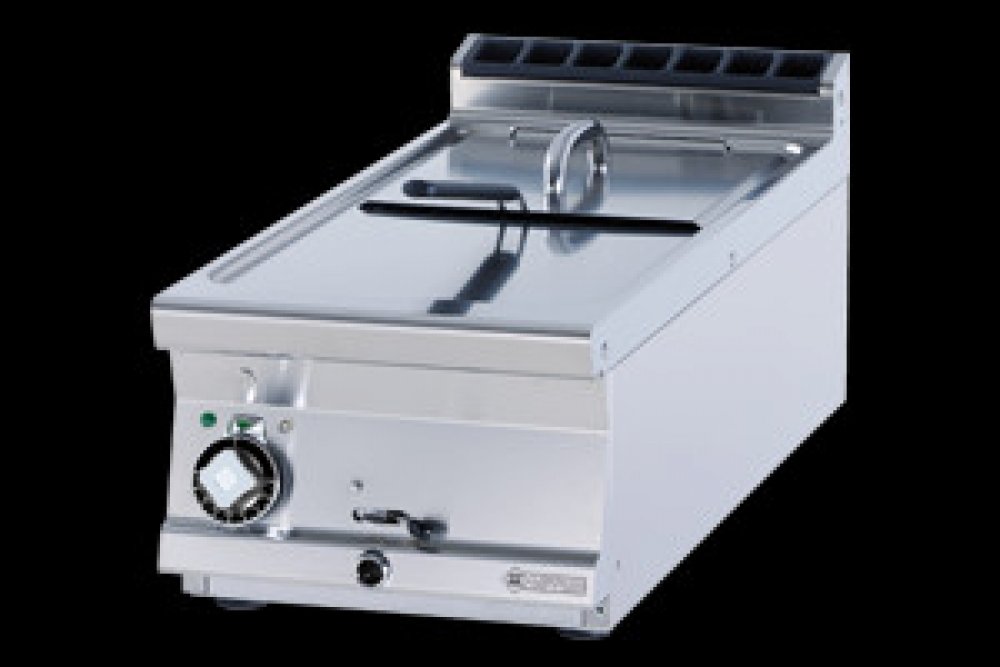 Fritéza elektrická F13T 94ET o objemu vany 8l, v nerezovém provedení s výpustí na čelní straně s jedním košem o rozměru 280 x 290 x 100 mm je stolní zařízení s kontrolkou chodu a nahřátí. Teplotní rozsah 50 °C až 190 °C.