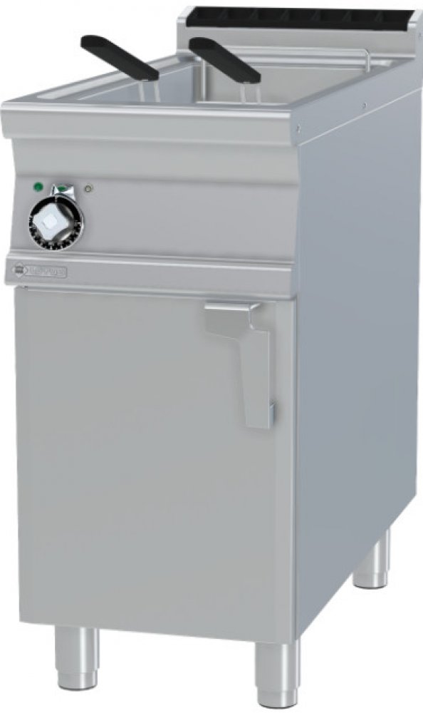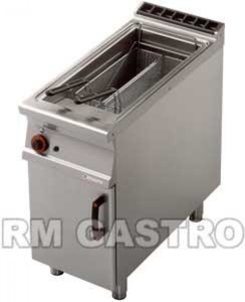 Fritéza jednoduchá plynová 25 l vyrobená z nerezové oceli, třífázová. Rozměr vany v cm: 31x51x44, 2x koš, rozměr koše v cm: 13,5x45x15, s víkem. Produkce 25 kg/hod. Vhodná do kuchyně nad 500 jídel – nemocnice, školy, věznice, ústavy apod. Masivní konstrukce z plechu o síle 2 mm. Důsledné zaoblení hran pro snadnou údržbu. Nová konstrukce hořáku pro maximální účinnost. Maximálně pevné a odolné spoje...