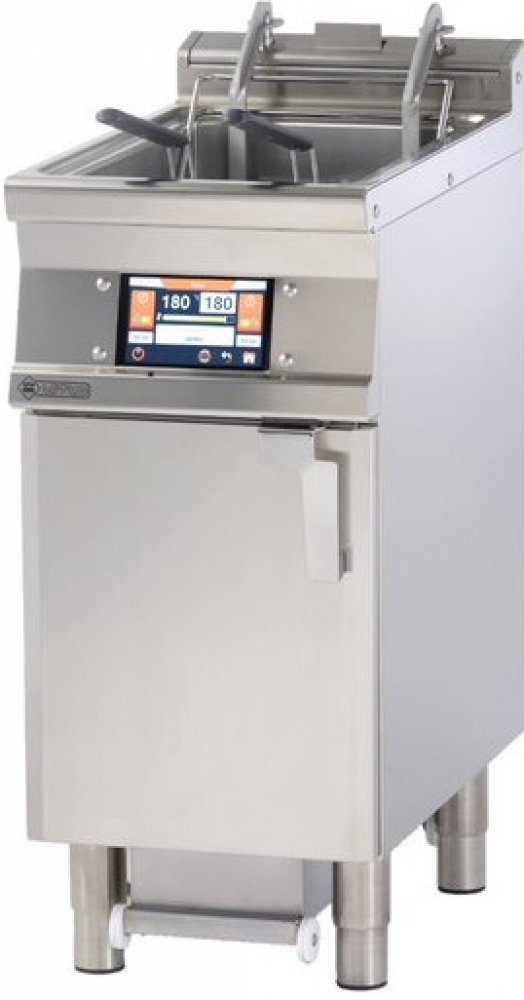 Fritéza elektrická automatická F25 94 ETDPS v nerezovém provedení s podestavbou a prolisovanou vrchní deskou o objemu 25 l je vybavena 7" displejem, filtrací a zdvihem. Má 2 × koš, 1× vanu a výpusť do podestavby. Teplotní rozsah 50 °C až 190 °C.