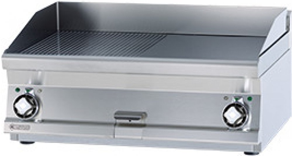 Grilovací deska hladká chromovaná FTLT 68 ETS, RM Gastro se zásuvkou na odpadní tekutiny, vrchní prcovní deskou o síle 2,5 mm a grilovací deskou o síle 14 mm. Vysoce kvalitní zařízení, které Vám zaručí vysoký standard a profesionální výkon. Grilovací deska RM Gastro je vhodná do kuchyní s produkcí do 100 jídel, jako jsou malé restaurace, bufety a bistra.