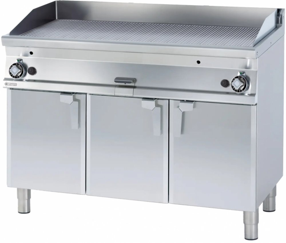 Plynová grilovací deska FTR 712 GS, rýhovaná. Plotna chromovaná o síle 14 mm zajišťuje vynikající vedení tepla, deska je vybavena kontrolkou chodu, vyhřátí a piezzo zapalováním. Deska obsahuje zásuvku na odpadní tekutiny, 2x samostatné ovládání a 2x vyhřívání plochy.