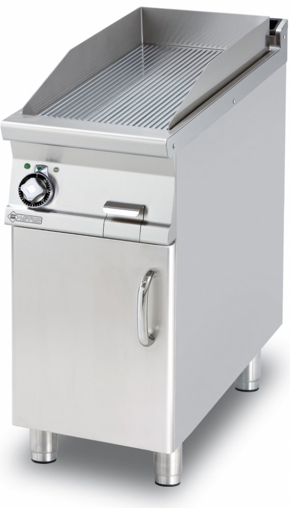 Elektrická grilovací deska FTR 94 ET, rýhovaná. Plotna zajišťuje vynikající vedení tepla, deska je vybavena kontrolkou chodu a vyhřátí. Díky hladkému povrchu se deska snadno čistí. Deska obsahuje zásuvku na odpadní tekutiny. Vlastnosti FTR 94 ET grilovací deska o síle 14 mm rozměr desky: 360 x 680 mm zásuvka na odpadní tekutiny regulace teploty 50 – 300 °C dvířka nejsou součástí – možno dokoupit