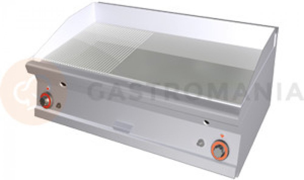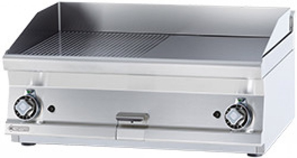 Grilovací deska rýhovaná FTRT 68 G - popis vrchní pracovní deska o síle 2,5 mm grilovací deska o síle 14 mm rozměr desky: 795 x 450 mm zásuvka na odpadní tekutiny piezzo zapalování 2x samostatné ovládání Technické parametry: rozměry v cm (š x h x v): 80 x 60 x 28 příkon: 12 kW váha: 83 kg
