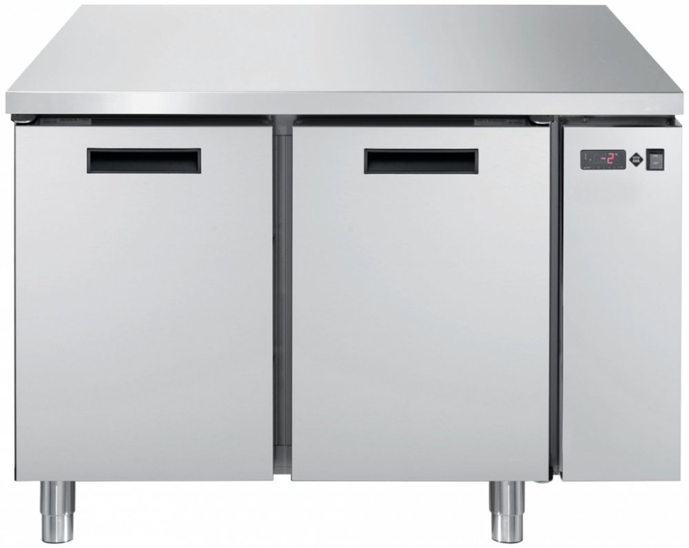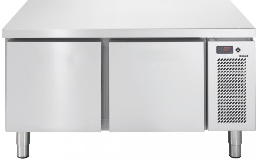 Mrazící stůl LNSF 702 1Z DKIT s kapacitou na 2 GN 1/1, uspořádání 2x1 zásuvky v nerezovém provedení s digitálním ovládáním a automatickým odmrazováním, teplotní rozsah - 24 °C až - 10 °C.