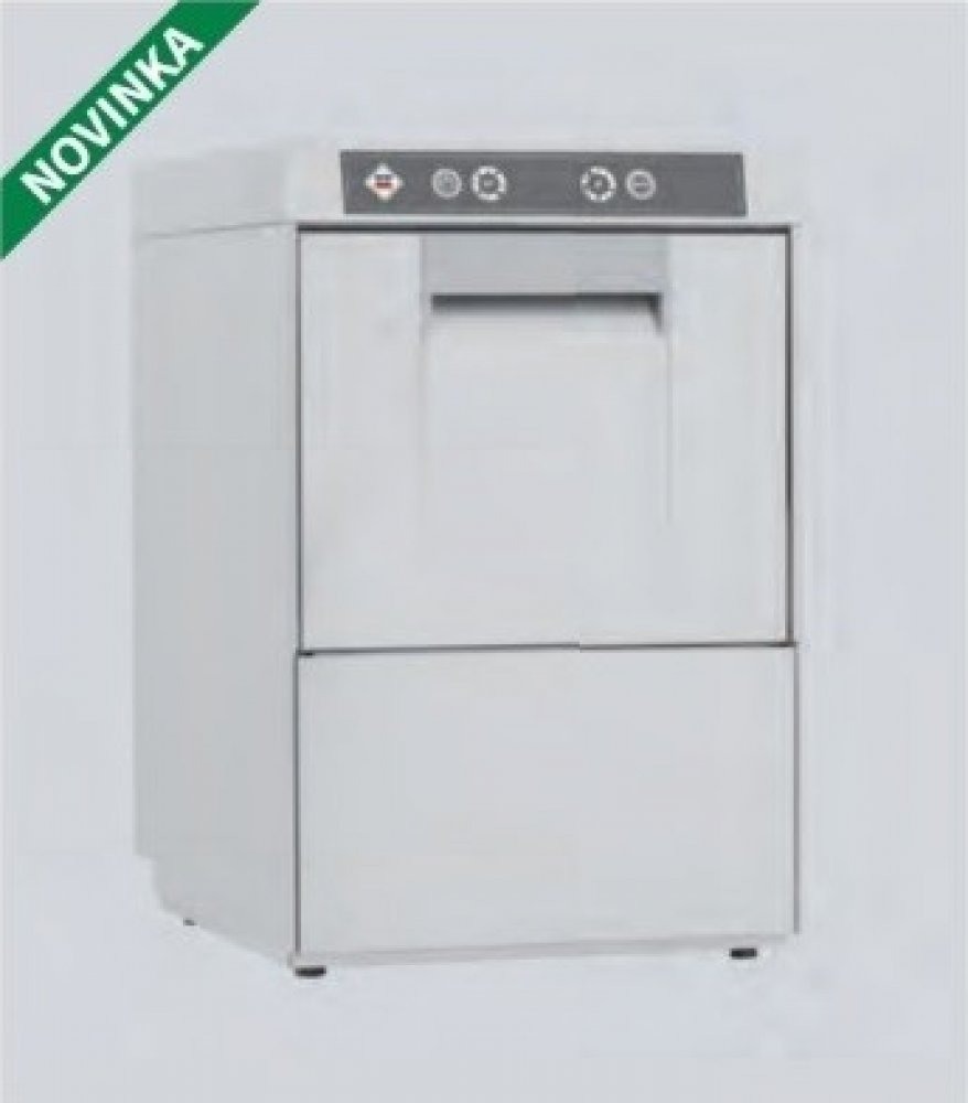 Myčka skla a příborů NT 42 - popis: rozměr koše: 40 x 40 cm výška dveří: 32 cm celonerezové provedení dvouplášťové celonerezové provedení lisovaná vana 1x koš na sklo, 1x koš na talíře, 1x koš na příbory lisované podpěry košů spodní i horní kompozitní otočná ramena společná pro mytí i oplach, se systémem click-clack pro snadné odejmutí dávkovač mycího a oplachového prostředku řízený elektronick sa...