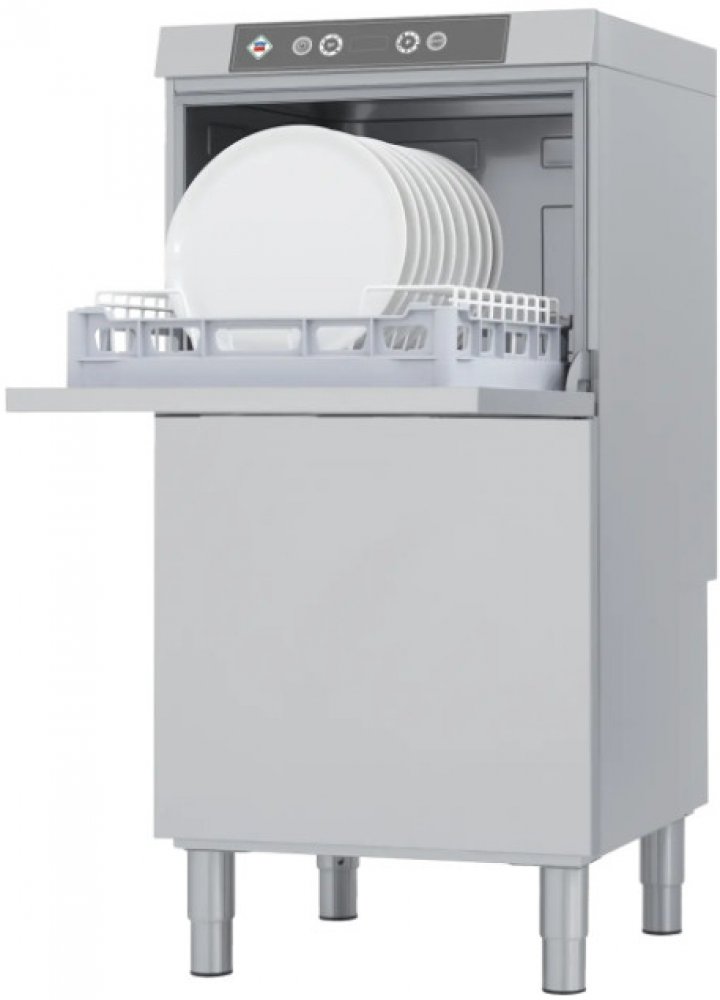 Myčka skla a nádobí NT 52 TB s podestavbou dvouplášťová třífázová v celonerezovém provedení, koš 50x50 cm, výška dveří 36,5 cm. Myčka nádobí je ovládána pomocí elektronického panelu. Myčka nádobí je vhodná do menších a středních provozů typu kavárna, restaurace, školka.