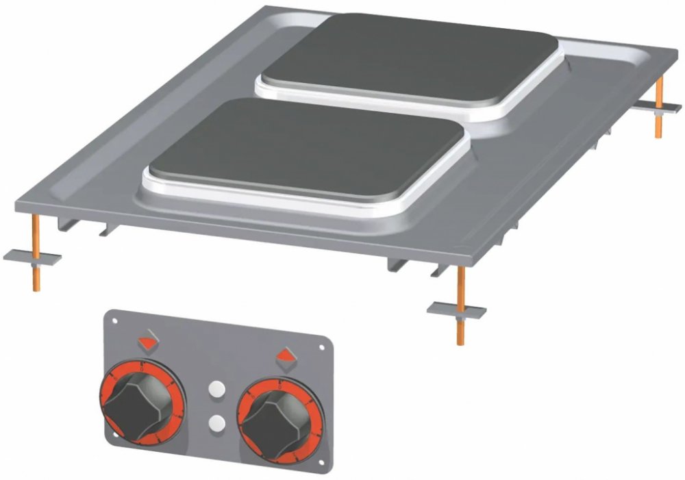 Sporák stolní elektrický PCQD 64 ET, RM Gastro s horní deskou o síle 2 mm. Vybavena vnitřní termostatickou ochranou plotny proti přehřátí a prolisovanou vrchní deskou, která umožňuje komfortní údržbu a čištění. Sporák RM Gastro má všechny servisovatelné části, které jsou snadno přístupné odejmutím čelního panelu.
