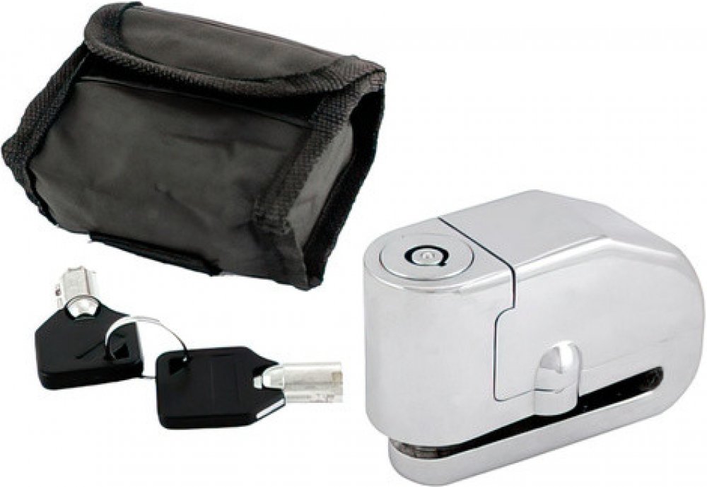 Masivní zámek kotoučové brzdy s alarmem. Funguje na principu otřesového čidla. Průměr zamykacího trnu 6mm.