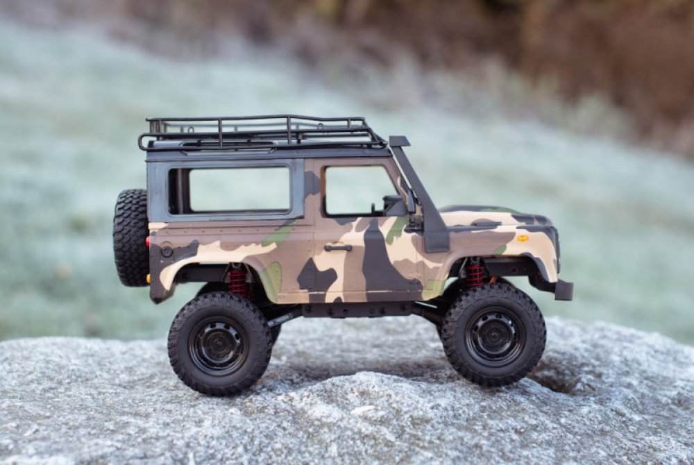 RMT LAND ROVER TRAIL PRO 1/12Nahrazeno verzí V2.0Unikátní verze slavného britského auta LAND ROVER DEFENDER. Tentokrát v měřítku 1/12. Verze ARMY je vybavenější vůz oproti předchozí verzi adventure. Liší se plnou střechou, proporcionálním servem zatáčení a silnějším akumulátorem. Součástí balení jsou i zajímavé polepy s českou vlajkou.Kovový rám RC modeluTělo modelu LAND ROVER od RMT MODELS je vystuženo kovovým rámem, díky němu je model velmi stabilní a odolný. To ale není vše, navíc je vybaveno kovovým šasím, Led osvětlením. S gumovými pneumatikami s hlubokým vzorkem pro vysokou přilnavost na povrchu. Kola jsou nezávisle odpružená, takže průchodu náročnějším terénem nic nebrání.Jedná se o model s pevnou kvalitní karoserií a kovovým rámem, kde si dali záležet opravdu s každým detailem, jako jsou stěrače, kryty osvětlení, zrcátka, otvory na přívod vzduchu a střešní nosič.Jízdní vlastnostiLand Rover Army vás rozhodně nezklame jak designem, tak jízdními vlastnostmi, jedná se o skvělý poměr cena/výkon. S pohonem všech 4 kol je vhodný pro jakýkoliv terén, poradí si opravdu všude. Tato verze má proporcionální plyn i řízení, můžete si tak plynule regulovat rychlost vozu i zatáčení . Elektronika je odolná proti stříkající vodě, takže do sněhu a mělkých kaluží není problém! Pro větší voděodolnost doporučujeme ošetření nanoprotechem.Doba jízdyPod kapotou je ukrytá přihrádka na akumulátor Li-on 7.4V 1200mAh, v balení jsou rovnou dva tyto akumulátory, díky kterým je doba jízdy cca 104 minut. Lze si ji ještě prodloužit dalším akumulátorem. Pro zprovoznění budete potřebovat 4 x AA baterie do vysílače. Dálkové ovládání funguje na frekvenci 2,4 GHz, díky tomu se vám nebude rušit ani víc modelů na jednom místě. Obsah balení: LAND ROVER TRAIL maskáč Volantový ovladač 2,4 GHz 2x Akumulátor Li-Ion 7,4V / 1200 mAh Nabíjecí USB kabel Technické parametry: Měřítko: 1/12 Konstrukce auta: crawler Délka auta: 35 Šířka auta: 17 Výška auta: 20 Hmotnost auta: 1330 Auto je vhodné na ven: ano Barva: maskáčová Auto je vhodné do interiéru: ano Typ motorů v autě: stejnosměrné Rychlost auta: 6 Kapacita akumulátoru v autě: 1200 Napětí akumulátoru v autě: 7.4 Typ akumulátoru do auta: Li-ion Typ nabíječky: USB Výměnný akumulátor v autě: ano Napájení ovladače k autu: 4xAA Doba jízdy auta: 104 Dosah ovládání auta: 90 Frekvence ovládání RC auta: 2,4Ghz Konstrukce ovladače k autu: Pistolový Plynulá regulace rychlosti: ano Plynulá řízení zatáčení: ano Voděodolnost (stříkající voda): ano Vodotěsnost (potopení): ne