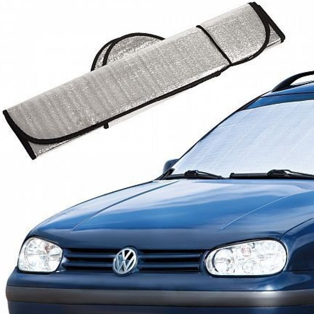 Univerzální clona na přední sklo automobilu v létě proti slunečnímu záření nebo v zimě proti vzniku námrazy. Clona rozměr: 150 x 70 cm
