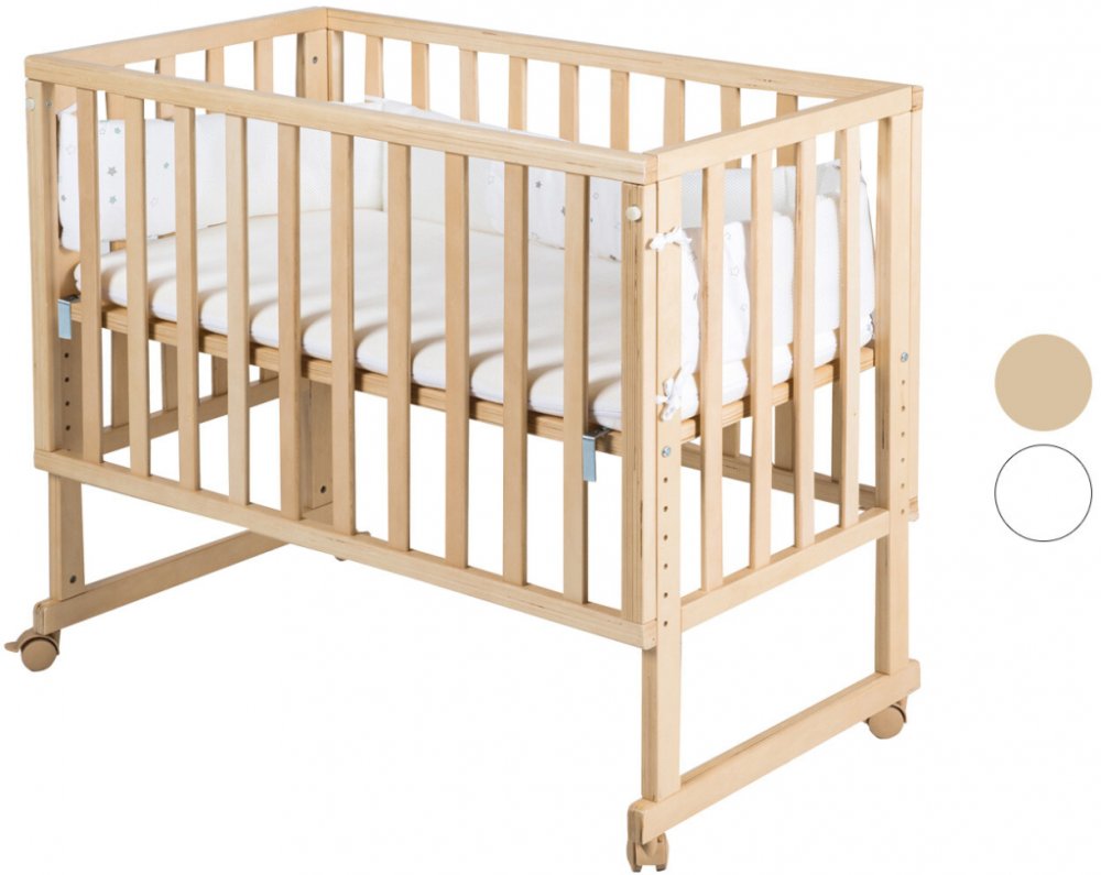 roba Dětská postýlka 3v1 »Safe asleep« Vlastnosti produktu tabletd Barva: přírodní; bílá Styl: Hvězdná magie Typ: 3v1 postýlka Funkce: Trojí použití Plocha na ležení: cca D 90 x Š 45 cm Úložný prostor: ne Rošt: ano Výškově nastavitelný: ano Matrace: AIR-balance systém matrace Roste s dítětem: ano Materiál: Dřevo; Textil: bavlna Max. zatížení: max. 15 kg Rozměry: cca D 94 x Š 49,5 x V 80,5 cm Hmotn...