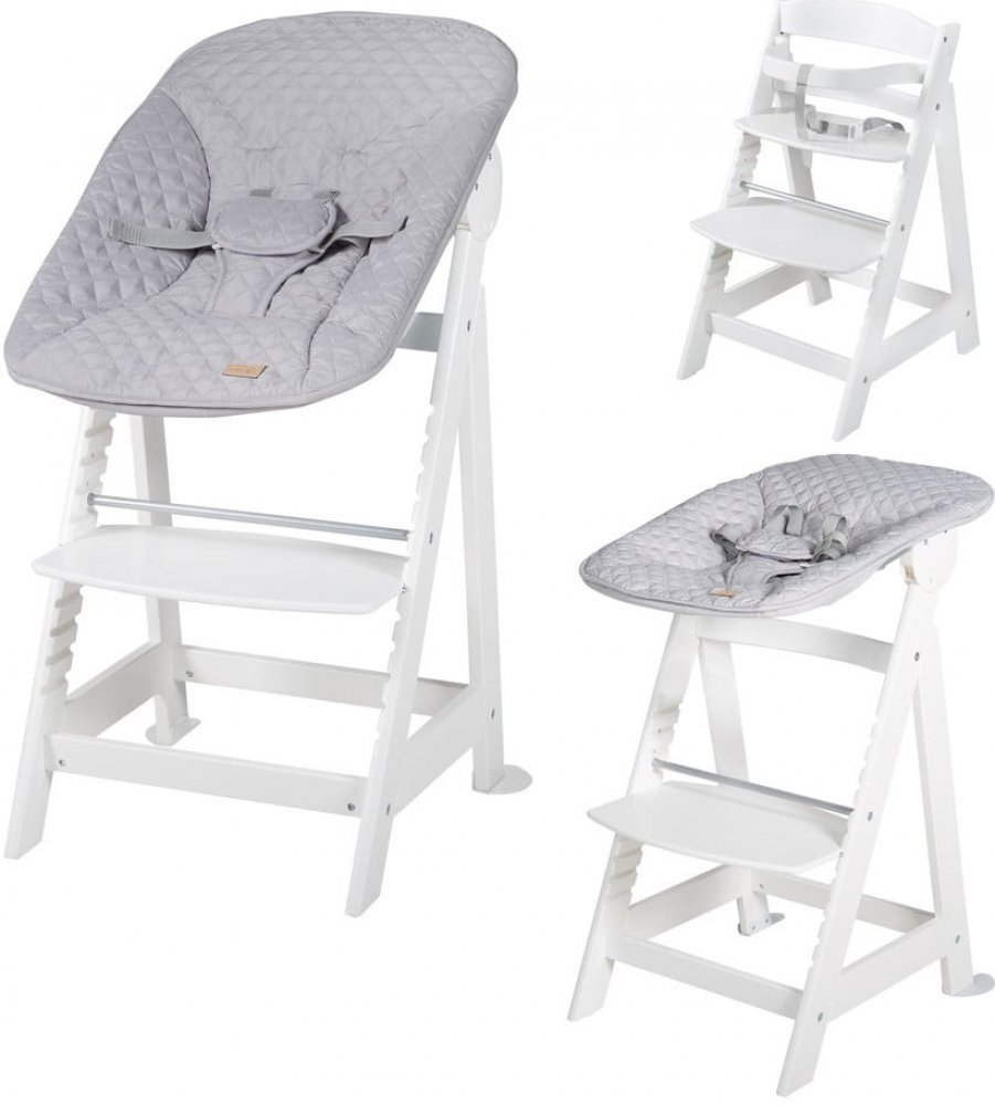 Rostoucí židlička se schůdky Born Up v okouzlujícím moderním designu je dodávána v kompletní sadě s roustoucí dřevěnou židličkou, včetně nastavitelného látkového lehátka. Rostoucí židle s lehátkem pro vaše dítě je vhodná pro kojence od 0 do 6 měsíců a do 9 kg.