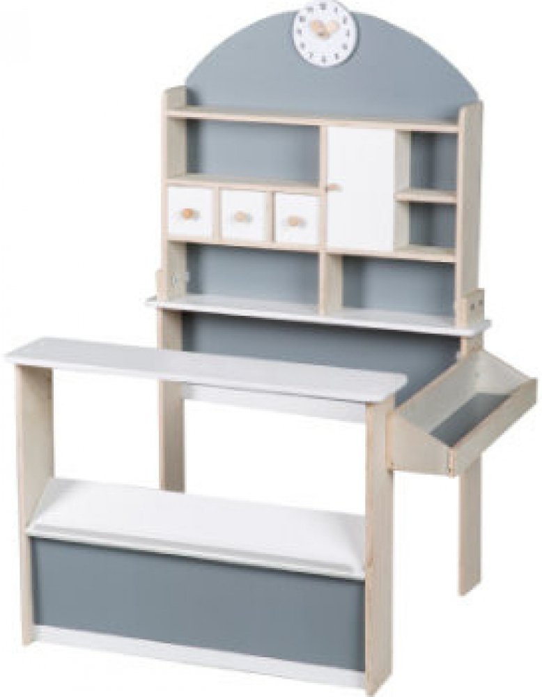 roba Kaufladen Je to sen mladých prodejců. Během hraní rolí se malí prodejní talenti učí vzájemně komunikovat a hravě si poradí s druhy výrobků, množstvím a čísly. Prodejna s mnoha regály, posuvnými dveřmi, velkým předním regálem a praktickým bočním pultem nabízí dostatek prostoru pro široký sortiment zboží. Volně ložené zboží, například sladkosti, lze uložit do tří šuplíků. Podrobnosti o výrobku:...