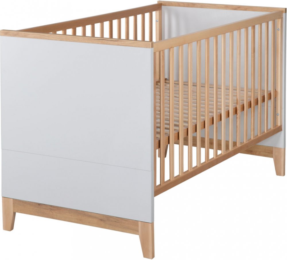 roba Dětská postýlka »Caro 70 x 140 cm Vlastnosti Vyrobeno v EU Snadná montáž 3x výškově nastavitelná Bezpečný vstup a výstup Přestavitelná na juniorské lůžko pomocí samostatně dostupných bočnic Max. zatížení: 50 kg Doporučený věk: 0 - 7 let Materiál Dřevotříska s melaminovou úpravou Rošt: vrstvené dřevo Rozměry cca Š 144 x H 78 x V 89 cm Plocha na spaní: 70 x 140 cm Hmotnost cca 32 kg