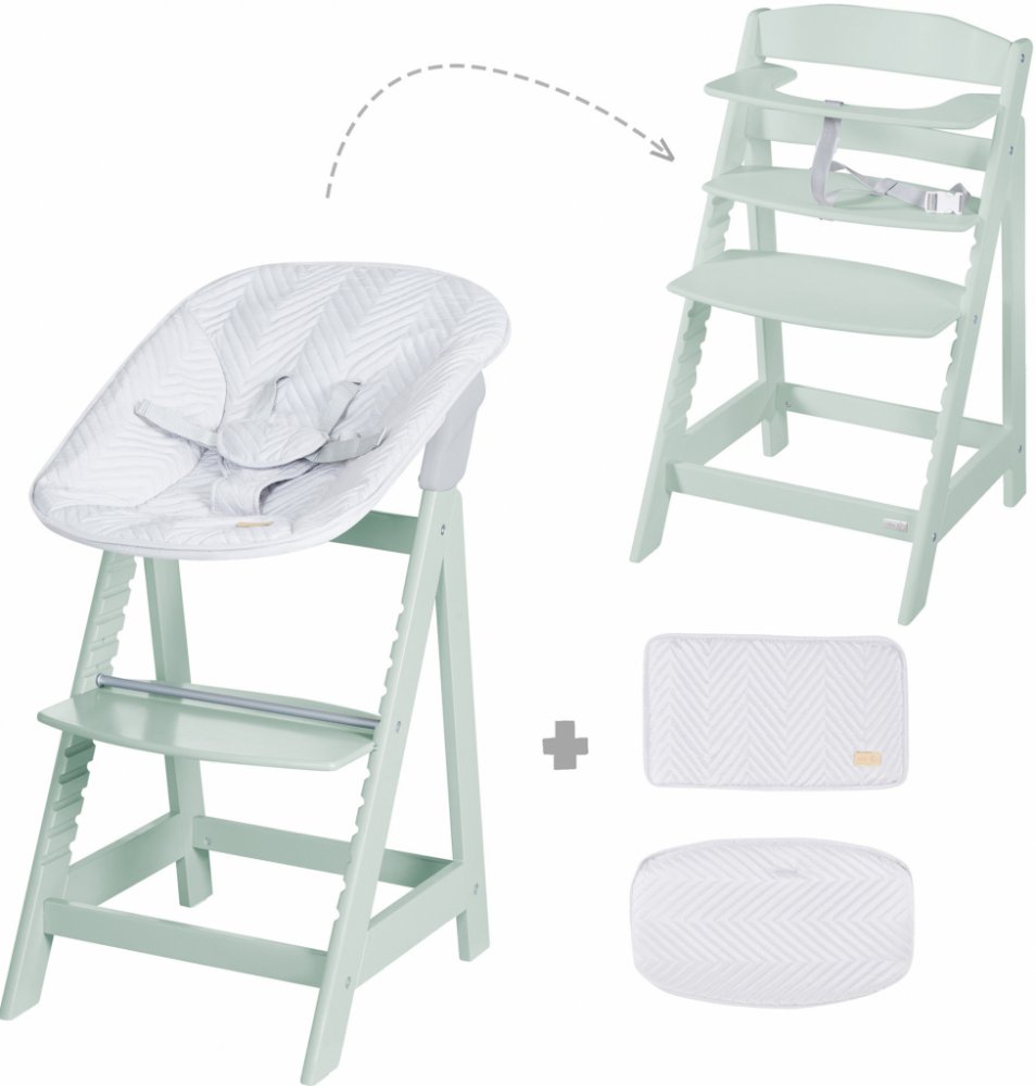 roba Dětská vysoká židlička Born Up 2 v 1 Rostoucí židlička 2 v 1 Vysoká židlička s polohou na ležení pro kojence Židlička pro malé a větší děti Výškově nastavitelná a vyjímatelná sedací část, příp. opěrka nohou Nástavec má praktickou polohu pro krmení a je odnímatelný Ochranná lišta Snímatelný potah – lze prát při teplotě 30 °C Systém pásů: 5bodový bezpečnostní pás s nástavcem pro kojence 3bodový bezpečnostní pás pro starší děti Max. nosnost: cca 9 kg s nástavcem; cca 50 kg bez nástavce Doporučený věk: od narození do 6 let Materiál Dřevo, ocel, plast Sedací část: 100 % polyester Rozměry cca 66,5 x 46 x 94 cm (H x Š x V) Hmotnost cca 6,45 kg