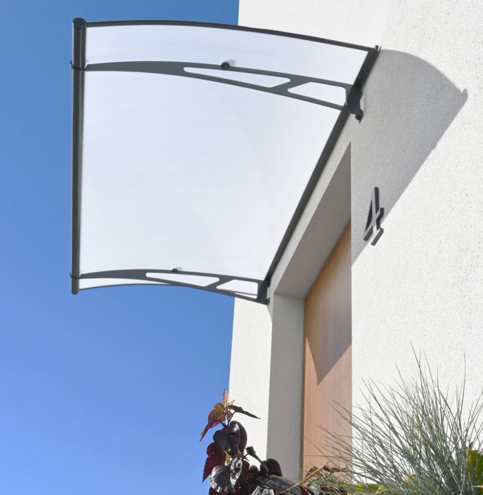 Vchodová stříška Exclusive Line Pro značky Robelit představuje praktický prvek sloužící k ochraně vstupního prostoru do domu. Konzoly jsou vyrobeny z pozinkované oceli ošetřené práškovou barvou v antracitovém odstínu (RAL 7016), materiálem samotné stříšky je pak mléčný polykarbonát. Tento materiál zajišťuje vysokou pevnost, odolnost proti nárazům a UV záření, dlouhou životnost a spolehlivost. Vchodová stříška je opatřena zabudovaným hliníkovým odvodňovacím žlábkem, který slouží k bezpečnému odtoku dešťové vody. Díky možnosti naklonění a zvolení požadovaného sklonu lze nastavit i směr odtoku. K tomuto modelu je možné přidat bočnici. Potřebné příslušenství je součástí balení.