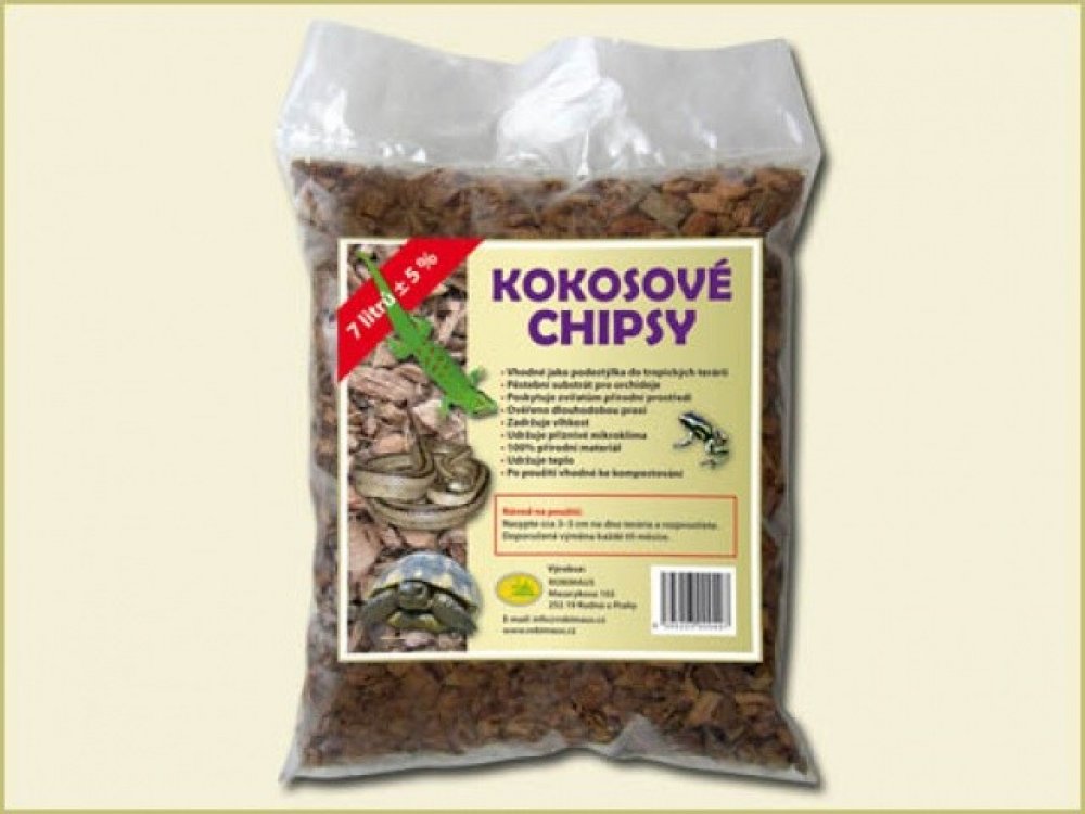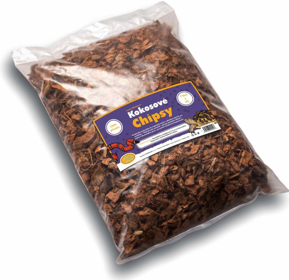 Čisté kokosové chipsy o velikosti 1 - 4 cm. Jsou vhodné jako podestýlka do polosuchých i vlhkých terárií. Výborně se hodí jako příměs do substátů pro orchideje. 100% přírodní materiál.