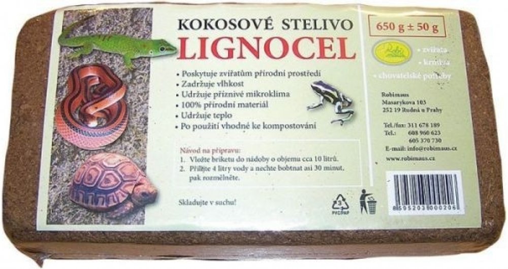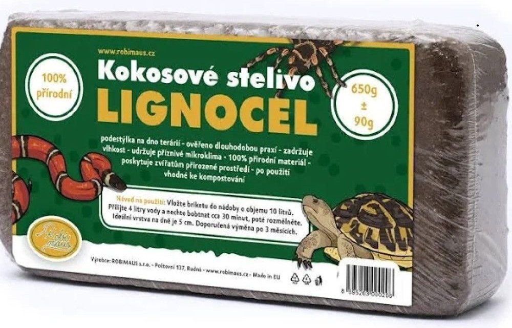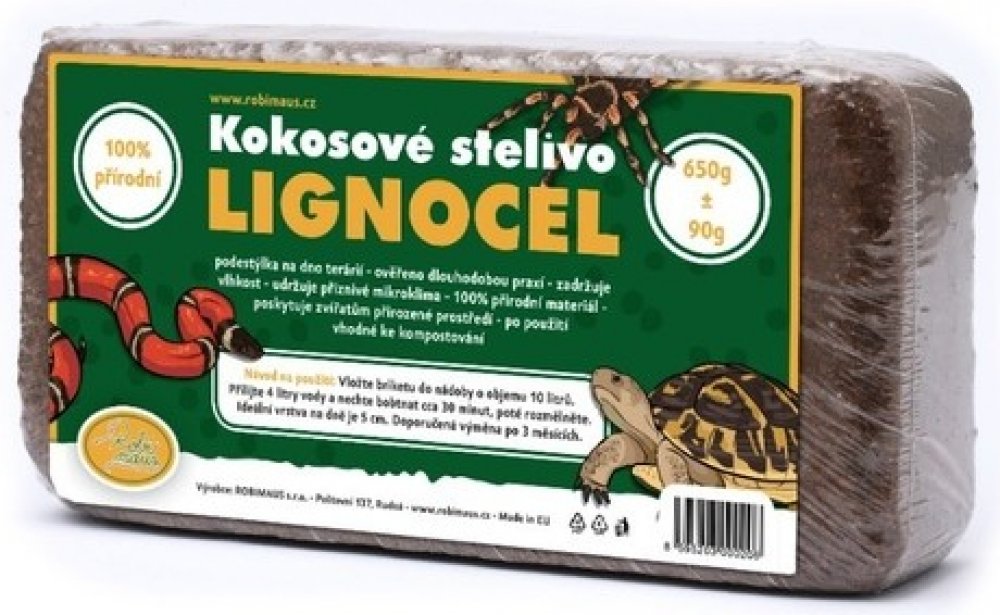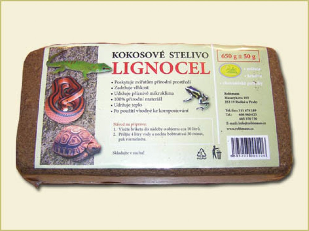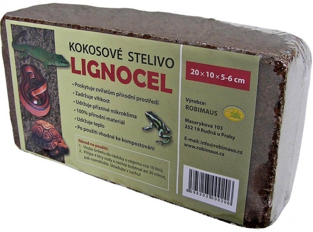 Lignocel je dřevitý materiál, který má výborné izolační vlastnosti a perfektně saje vodu. Nenamíchaný se hodí pro pavouky a jiné bezobratlé, po smíchání s jiným substrátem pro plazy – pro stromové druhy je vhodného překrýt například piniovou kůrou, pro hrabavé druhy smíchat s pískem. Vaši exotičtí mazlíčci budou z takové podestýlky nadšeni. Po zalití slisované cihly vznikne velké množství substrátu. Lignocel lze použít i při pěstování rostlin (přimícháním do substrátu zvýšíte jeho savost). Je 100% přírodní a navíc ho lze kompostovat.