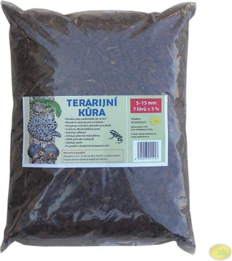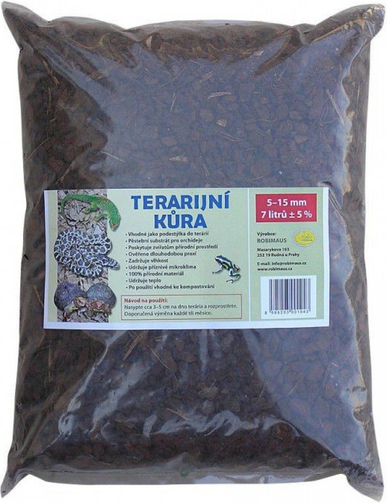 Použití: dno terária pokryjte vrstvou 5-15cm, dle velikosti terária a chovaného zvířete. Do větších terárií a pro zahrabávající se druhy použijte vyšší vrstvu substrátu. Z terária pravidelně odebírejte trus a zbytky potravy, v případě potřeby kůru dosypte. Celá výměna substrátu se provádí, 1-3x ročně, dle znečištění.