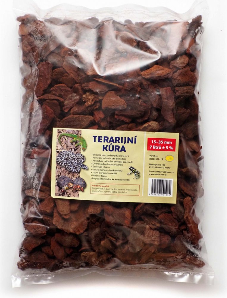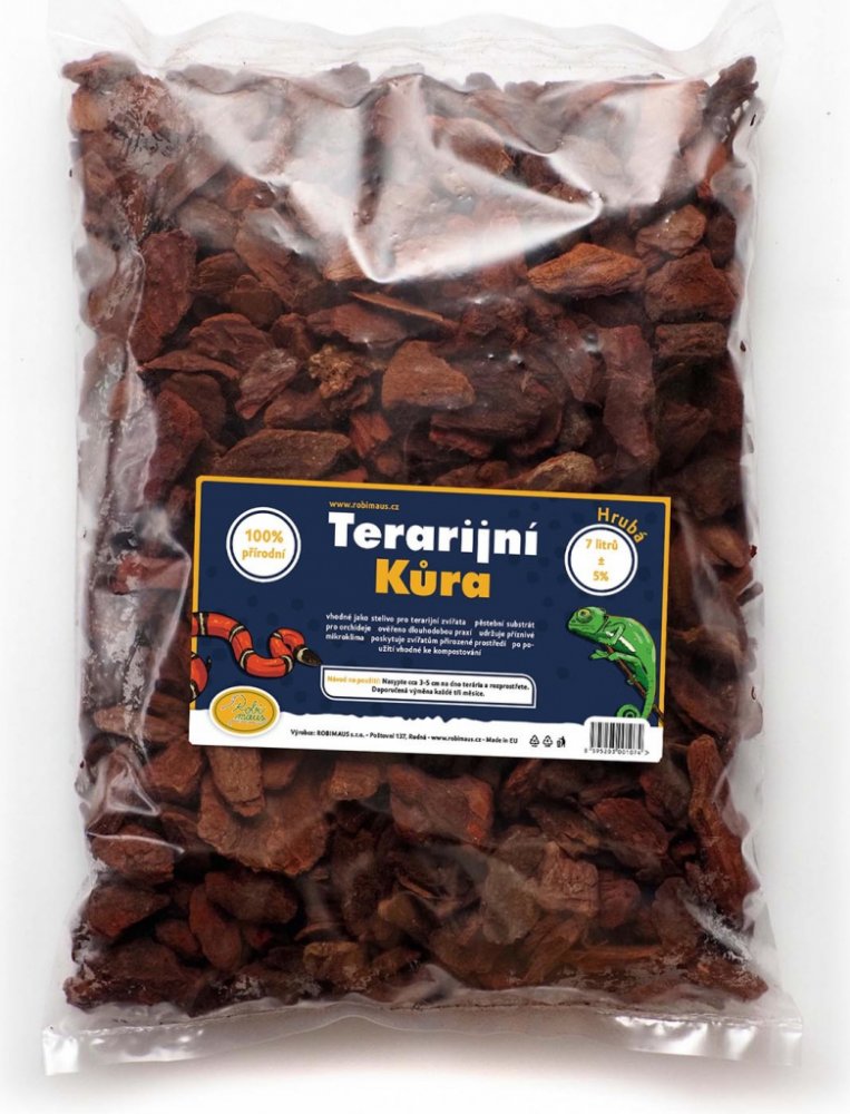 Kousky stromové kůry, velké cca 15 - 35 mm se hodí do všech typů terárií, suchých i vlhkých. Je ideální pro suchozemské želvy, hady, ještěry, gekony, varany, scinky a další zvířata.