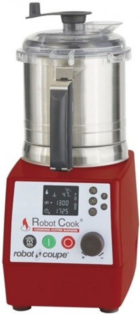 rozměr: 226x338x522mm(šxhxv), příkon elektro: 1,8 kW/230V, tooné těleso nádoby: 1200 W, motor: 1000 W indukční, ovládání: LCD panel, programování: 9 programovatelných receptů, objem nádoby: 3,7 l, maximální plnění: 2,5 kg, výkon: 10-50 porcí, regulace teploty: až do 140 °C s přesností +/- 1 °C, ovládaní: start, stop, puls, počet otáček: 100 - 3500 ot./min., turbo rychlost: až 4500 ot./min., střídavá rychlost: otočení nože každé 2 vteřiny při nízké rychlosti, provedení: stolní, mikrospínač víka, nádoba kutru: nerez, motorový blok: polykarbonát, základní príslušenství:rovný nůž s velimi jemným zubatým ostřím, rovný nůž hladký , víko se stíracím zařízením, vyhřívaná nádoba s precizní regulací teploty, , Určen pro uplatnění ve všech úsecích přípravy pokrmů – v úseku studené kuchyně, teplé kuchyně a cukrárny., Multifunkční stroj pro snadnou, rychlou a zejména efektivní práci specialistů v gastronomickém průmyslu., Základní funkce: hnětení, sekání, drcení, mixování, míchání, emulgování, ohřívání a vaření.