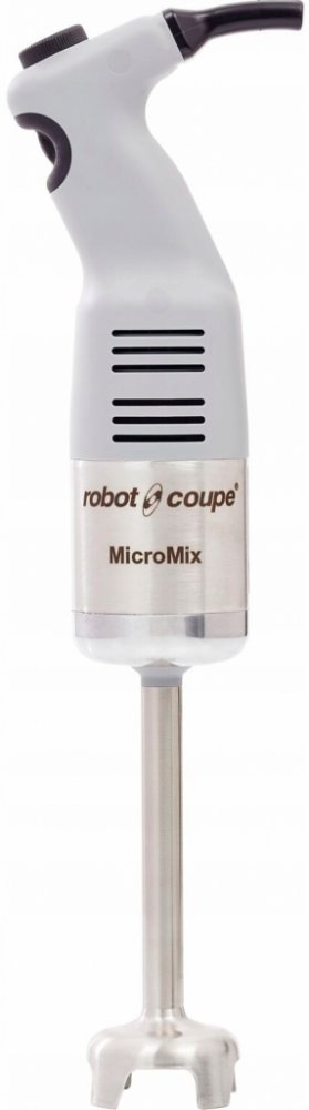 Ruční ponorný mixér MICROMIX od francouzského výrobce ROBOT COUPE. vhodný pro minutkovou kuchyni ideální pro malá množství – při použití těsně před servírováním funkce AEROMIX – patentované zařízení vyvinuté speciálně pro přípravu jemných, nadýchaných a objemných emulzí, které skvěle drží na talíři natahovací spirálový kabel pro snadnou manipulaci, maximální délka 1,3 m odnímatelná noha, nelze demontovat zvon od nohy, rozebíratelný nůž/Aeromix plynulá regulace otáček 1500–14000 ot./min. snadné čištění a dosažení perfektní hygieny MOTOROVÝ BLOK výkonný a tichý motor dobře přístupná a přesná regulace otáček pro snadnou volbu otáček podle požadované textury kryt motorového bloku je nerezový Základní vybavení: mixovací nůž – pro přípravu polévek a omáček v malém množství emulgátor Aeromix - pro přípravu jemných, nadýchaných a objemných emulzí držák mixéru