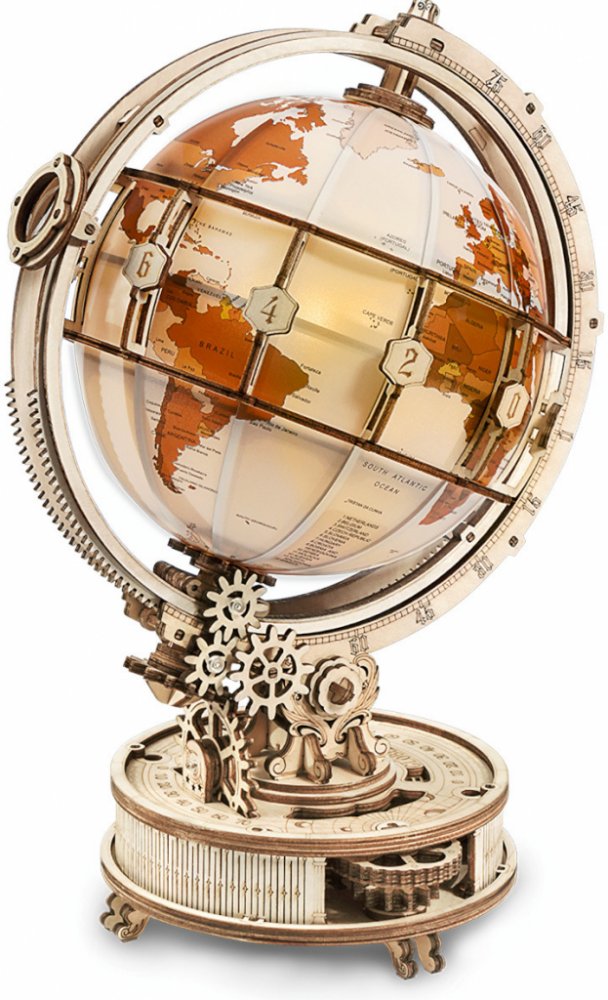 RoboTime 3D dřevěné mechanické puzzle Svítící glóbus