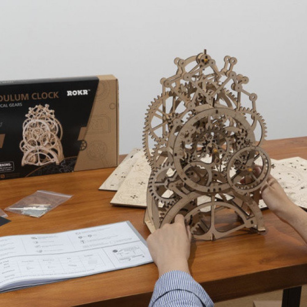 Robotime 3D mechanické puzzle Hodiny s kyvadlem 166 ks