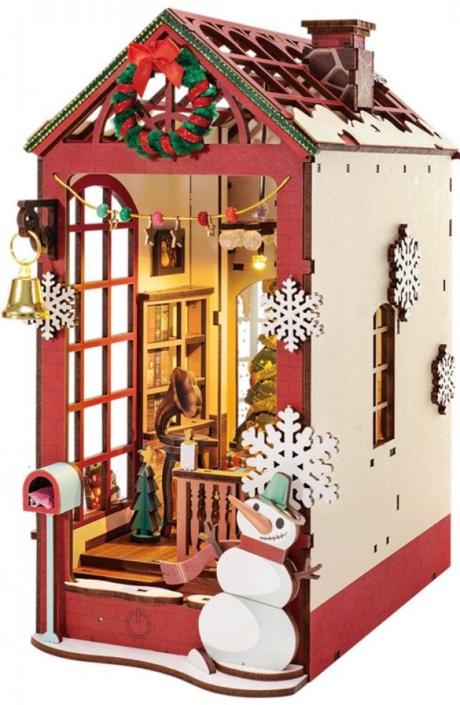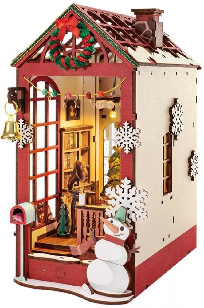 RoboTime 3D skládačka Zarážka na knihy Miniatura domečku Vánoční interiér, Rozměry balení: 31,6x23,1x7,9 cm Rozměry po sestavení: 13,6x21,8x24,7 cm Věk: 14+ Materiál: dřevo, papír Doba sestavení: 3 hod Baterie: 2xAAA/LR03/AM4 1,5 V - nejsou součástí balení Počet dílků: 206 Obtížnost: ★★★☆☆ DIY sada