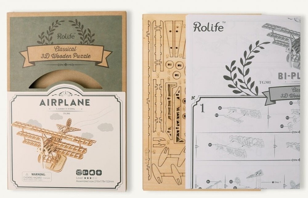 Robotime dřevěné 3D puzzle Historické letadlo TG301 145 ks