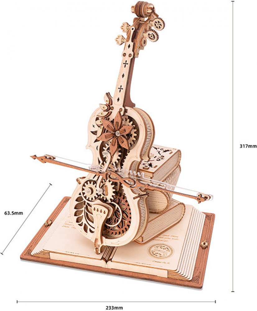 RoboTime dřevěné mechanické puzzle Kouzelné violoncello (elektrický pohon)