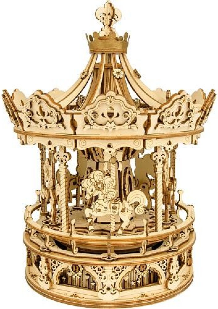 Detailní dřevěný model klasického kolotoče. Skládačka hrací skříňky od značky Robotime je v přírodních barvách s nápaditými pohyblivými detaily a zvukem. Kvalitní 3D puzzle vás nezaskočí svou náročností a po sestavení zkrášlí poličku. Dřevěná skládačka je dodávána v nesloženém stavu, balena v krabici. Vybaveno detailním návodem k sestavení.