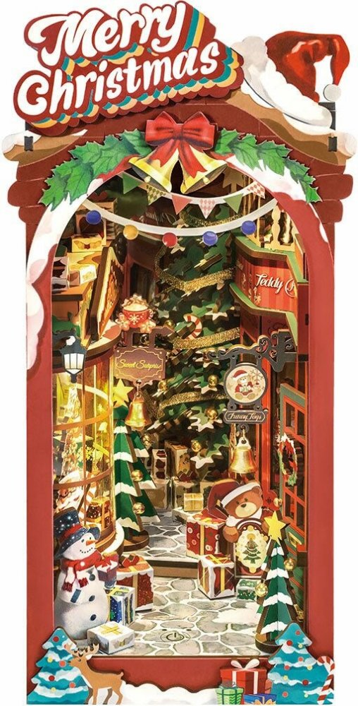 ROBOTIME Rolife DIY 3D Zarážka na knihy: Vánoční ulička s LED osvětlením 289 dílkůŘada ROBOTIME ROLIFE 3D Book Nook Do It Yourself Miniature House představuje miniaturní domečky jako zarážku na knihy ve formě zmenšených modelů místností, pokojů, domů, uliček i zahrádek. Vlastníma rukama vykouzlíte úžasná díla s desítkami miniaturních detailů. Užijte si hodiny tvoření a těšte se překrásným výsledke...