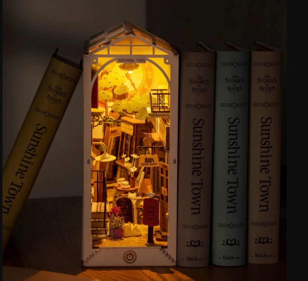 RoboTime Zarážka na knihy miniatura domečku Slunečné městečko
