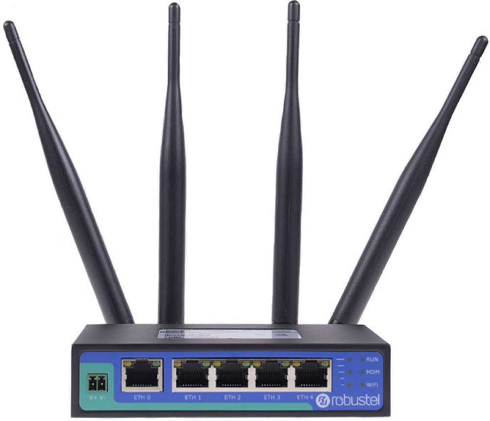 Robustel cellulární LTE router R2011-A-4L-A12EURobustel R2011-A-4L-A12EU je vysoce výkonný průmyslový LTE Cat.4 router s pěti ethernetovými porty. Dále nabízí duální pohotovostní režim se dvěma SIM kartami a řadu pokročilých funkcí pro aplikace IoT nebo M2M. Poskytuje spolehlivou konektivitu v oblasti IoT, automatizaci a dalších bezdrátových aplikacích. Robustel R2011 je ideálním řešením pro průmyslové aplikace, automatizaci, monitorování a mnoho dalších. Router pracuje v širokém teplotním rozsahu -35 až +75°C, což zajišťuje stabilitu provozu i v extrémních teplotách. Průmyslový router R2011-A-4L-A12EU obsahuje RobustOS, operační systém vyvinutý na Linuxu, který usnadňuje implementaci a vývoj pro vaše aplikace. Verze GM-R2011-A-4L-A12EU je určená pro oblasti EMEA (Evropa, Střední východ, Afrika).Klíčové vlastnosti:• Dual SIM redundance pro nepřetržité mobilní připojení 2G/3G/4G• 4G: LTE FDD: B1/B3/B7/B8/B20/B28A LTE TDD: B38/B40/B41• 3G: WCDMA: B1/B8• 2G: GSM: B3/B8• Link Manager podporuje zálohování mobilních sítí WAN, ethernet WAN, WLAN WAN a detekci ICMP• WAN - statický/DHCP klient• RobustOS + SDK + aplikace• IPsec/OpenVPN/GRE/Wireguard VPN funkce• Správa a údržba prostřednictvím cloudu Web/RCMS• Automatické restartování pomocí SMS/časového plánu• Vstupní napětí: 9 až 36 V DC• Rozměry: 127 x 82 x 30 mm• Robustní kryt, montáž na stěnu nebo na DIN lištuDoporučené aplikace:• Bankomaty• Ropný a plynárenský průmysl, WiFi na čerpacích stanicích• Pobočky společností• WiFi ve veřejné dopravě• Restaurace rychlého občerstvení• Digitální tabuleSoučást balení:• 2x Celulární anténa• 2x WiFi anténa• 1x konektor 2 piny Ethernetový kabel a napájecí zdroj nejsou součástí balení.SECTRON doporučuje zakoupení následujícího příslušenství:AM-RT-FPOWR - Napájecí zdroj 12V / 1A, L=1.4m.-bez konektoru, volný konecXAM-RT-ETH - Ethernet. kabel nekřížený, šedý, 2mProduktové videoProduktové video vám poskytne informace o funkcích routeru Robustel R2011 a představí konkrétní příklady použití.Technické informace naleznete v dokumentech ke stažení.