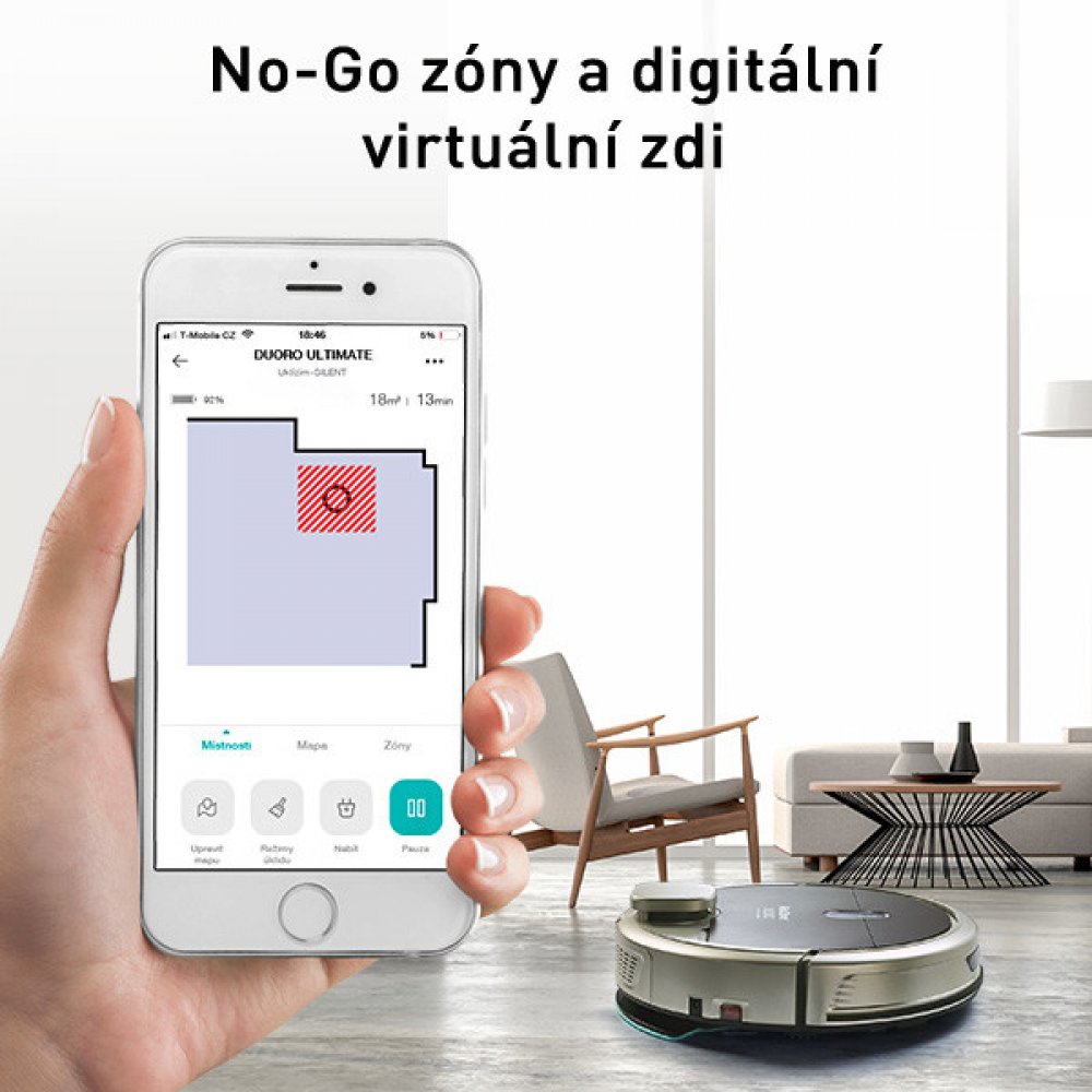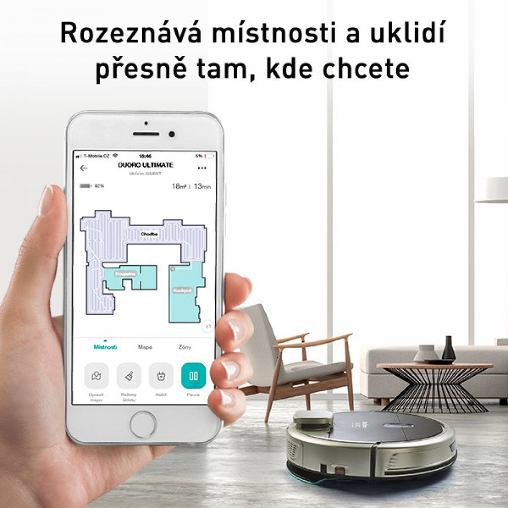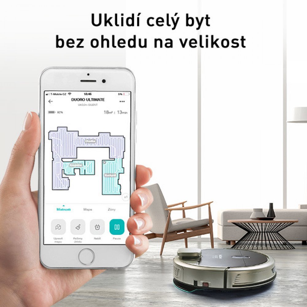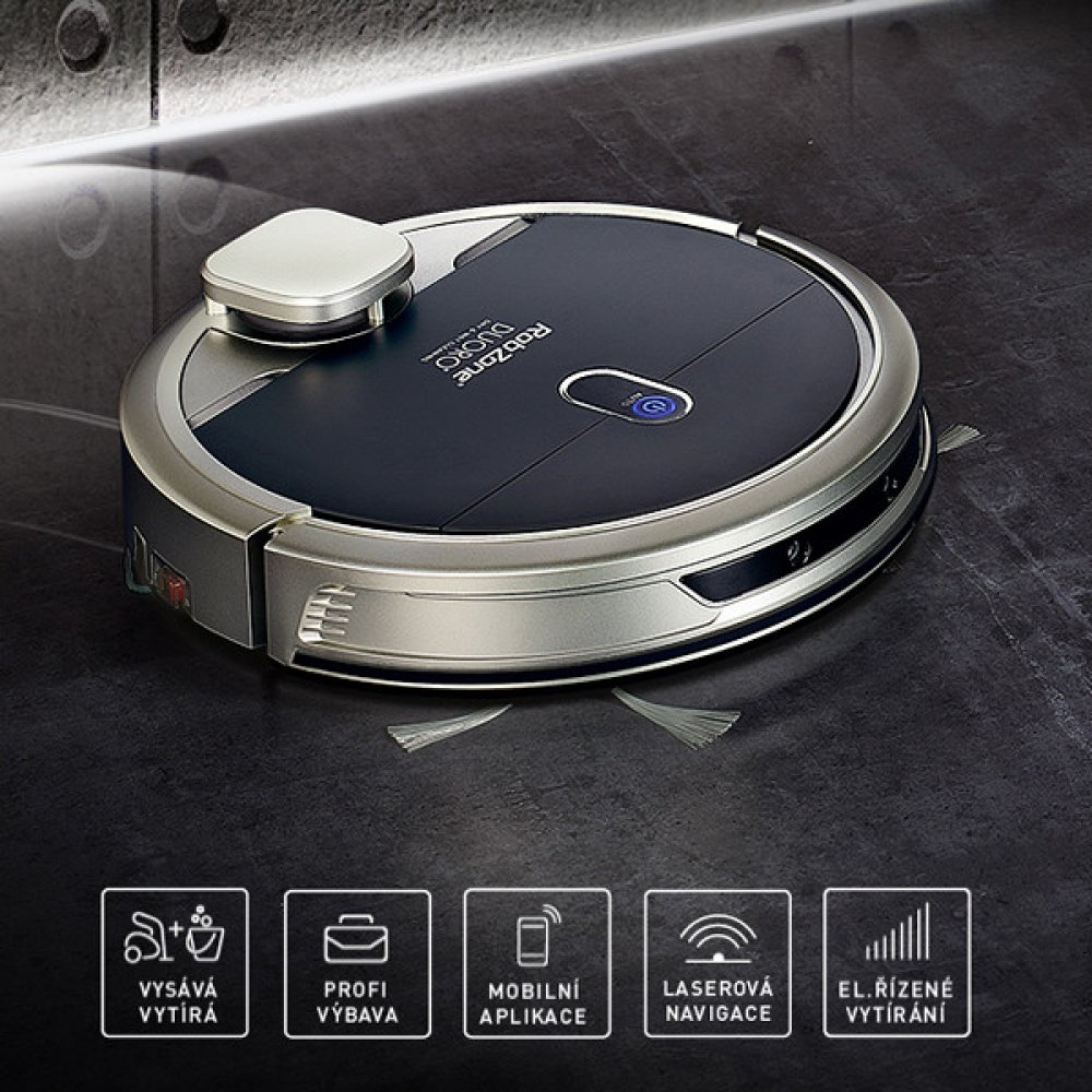 NOVINKA - Chytře vysává i vytírá v jednom kroku. Vysaje neomezeně velký prostor. Přesná laserová navigace se zónovým úklidem. Inteligentní systém úklidu MyFloor. Elektronicky řízené vytírání AQUAMAX