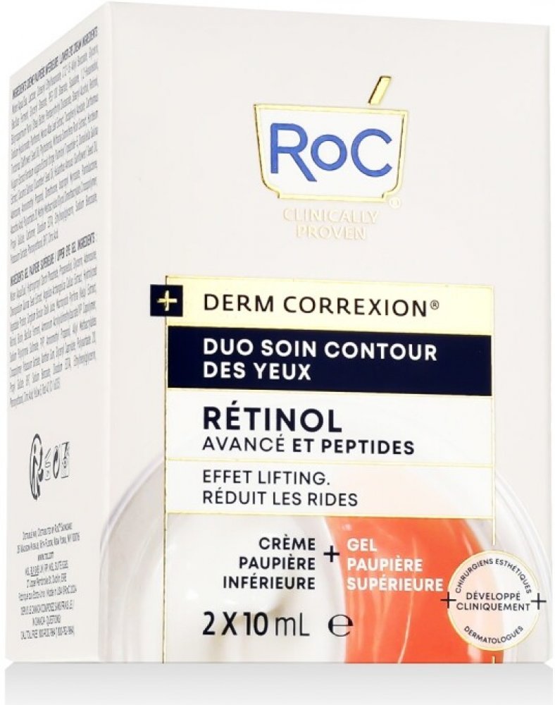RoC Derm Correxion Dual Eye, 2x10 ml, Oční krémy a gely pro ženy, Oční okolí je velmi citlivou oblastí, jeho kůže mimořádně tenká a křehká a díky tomu také náchylnější k projevům únavy a stárnutí. Vyžaduje proto i speciální péči se složením a konzistencí navrženými přesně pro její potřeby. Oční krém RoC Derm Correxion Dual Eye si poradí se specifickými problémy očního okolí. Dodá pleti kolem očí p...